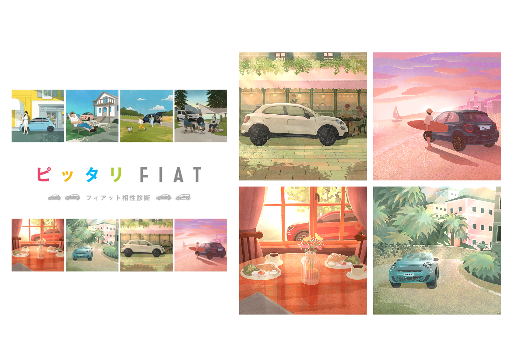 『ピッタリFIAT』FIAT相性診断  診断結果用イラスト4点を担当しました。
